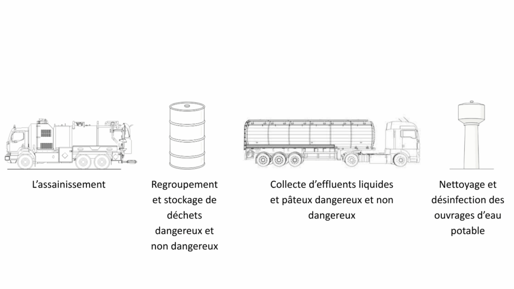 Pour l’assainissement et la collecte d’effluents dangereux et non dangereux :